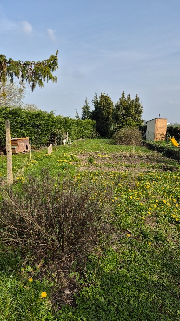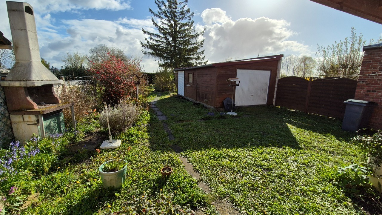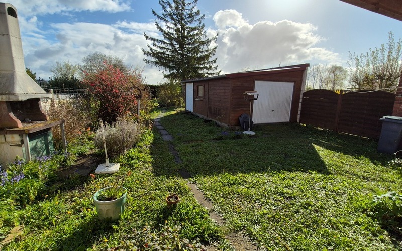 La parcelle est verdoyante et le garage est accessible par le coté de la maison.