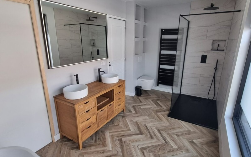 Au 2ème étage vous y découvrirez une suite parentale complète avec chambre, dressing et salle de bain composée d’une vasque, baignoire et douche à l’italienne.