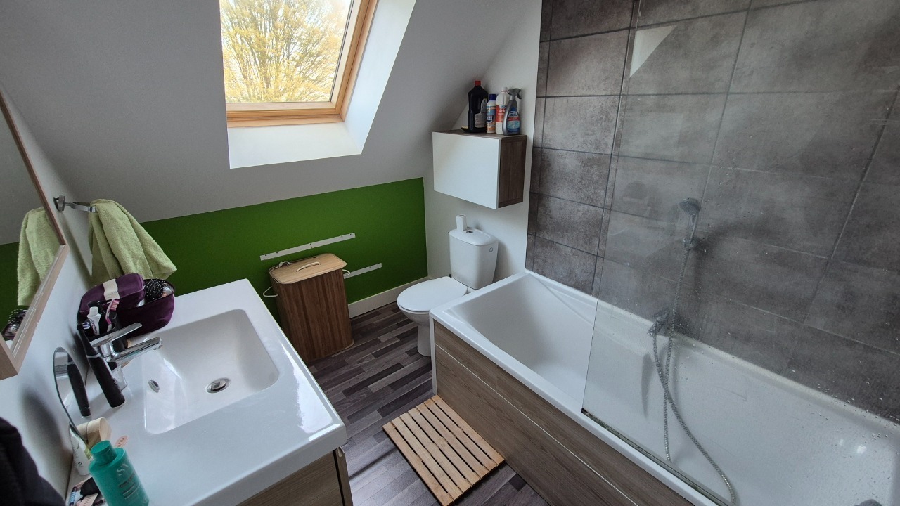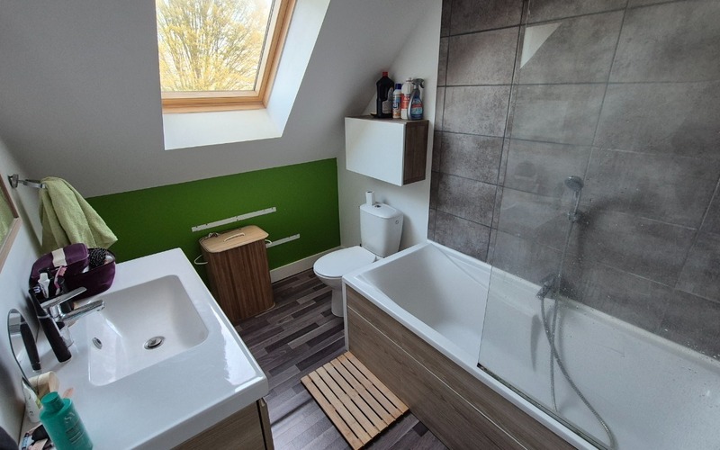 A l'étage vous découvrirez 3 chambres dont une avec un espace dressing et la salle de bain composée d'une vasque, baignoire + WC